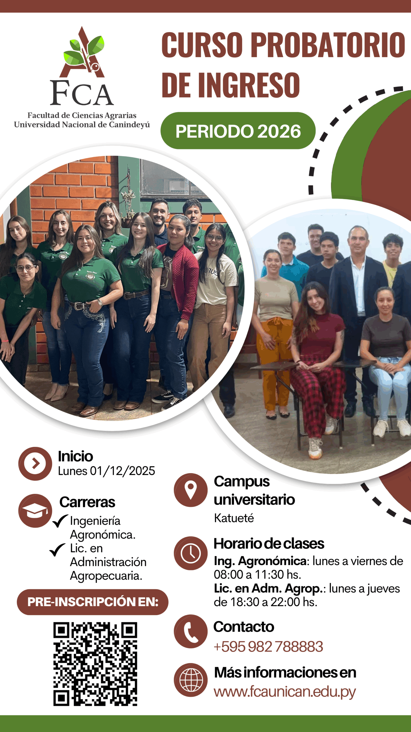 La Facultad de Ciencias Agrarias de la Universidad Nacional de Canindeyú abre las puertas a nuevos talentos para el Curso Probatorio de Ingreso – Periodo 2026.